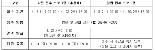 ※ 자세한 문의는 사무실(☎ 062-671-3370)로 연락 주시면 친절히 안내해 드립니다.