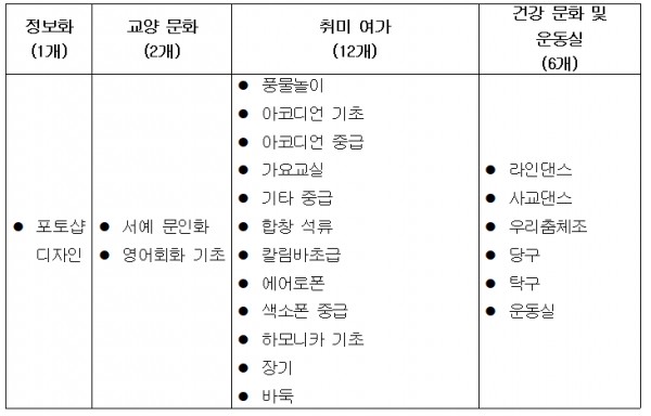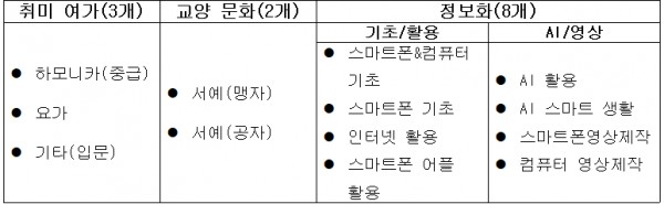 중복 수강 제한: 원활한 운영을 위해 아래 프로그램은 영역별로 1개만 신청 가능합니다.