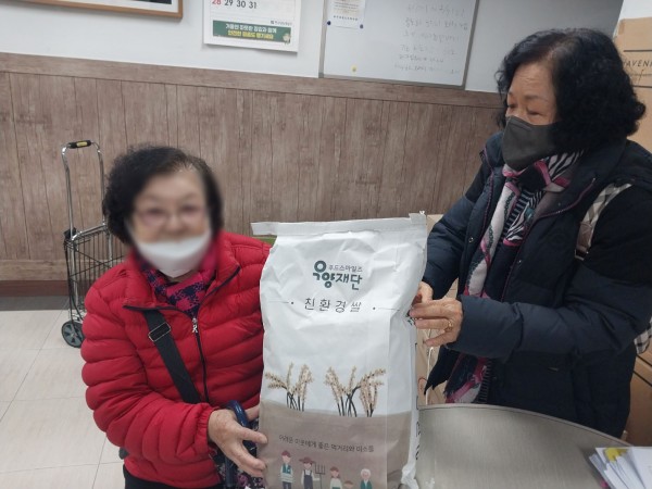 ❍ 내 용 : 우양복지재단의 친환경 쌀 지원 사업 지원기관으로 선정되어 겨울철 식사 해결에 어려움을 겪는 돌봄 부담 어르신들께 친환경 쌀을