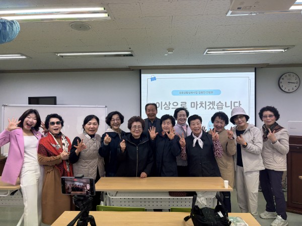 본문 - 일 시: 2026. 3. 27.(금), 2시 30분 ~ 4시 - 장 소: 복지관 1층 배움터 - 대 상: 선정 경로당 임원진 15명 - 내 용: 다온강사양성교육원과 연계하여 경로당 임원진 리더십 교육 진행 및 의견수렴 경로당 임원진 어르신들을 모시고 리더십 교육과 간담회를 진행하였습니다. 서로의 경험과 생각을 나누며 공감과 소통이 오가는 뜻깊고 따뜻한 시간이 되었습니다. 앞으로도 어르신들과 함께하며 더 행복한 경로당을 만들어가겠습니다. 함께해주신 모든 분들께 감사드립니다. 좋아요 0 행복해요 0 슬퍼요 0