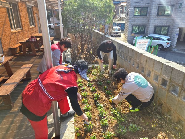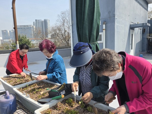 상추와 무, 접시꽃 씨앗을 하나하나 심고, 팬지와 베고니아 모종도 차근차근 식재하며 공간에 생기를 더했습니다. 이렇게 쌓인 손길 덕분에 복지관 내·외 화단과 옥상, 당구탁구장 앞까지 다시 푸릇한 기운이 살아났습니다.