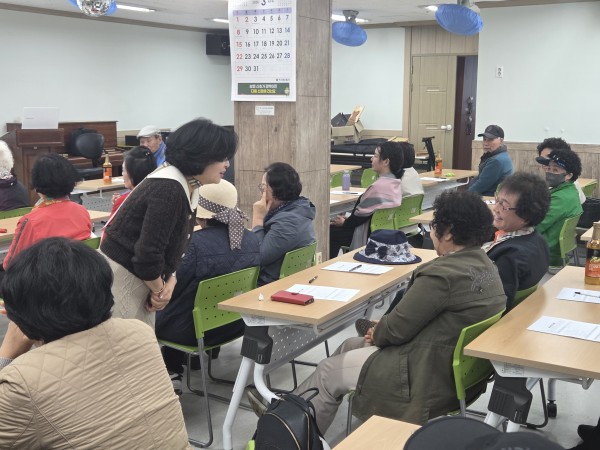 강사님과 함께 어르신들께 익숙한 노래를 부르며 양성평등의 관점에서 과거와 현재를 자연스럽게 비교해보고, 많이 달라진 요즘 속에서도 일상에 남아있는 성불평등 요소를 함께 살펴보며 서로의 생각을 편하게 나눠보았습니다.
