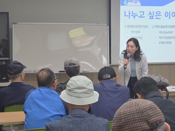 교육이 진행되는 동안 “영양제랑 같이 먹어도 되나요?”, “홈쇼핑에서 산 건강식품도 괜찮나요?”와 같은 질문이 자연스럽게 이어지며 현장 분위기도 매우 활기찼습니다. 약사 선생님께서 어르신 한 분 한 분의 궁금증을 눈높이에 맞춰 자세히 설명해 주셔서 모두가 함께 듣고 배우는 유익한 시간이 되었습니다.
